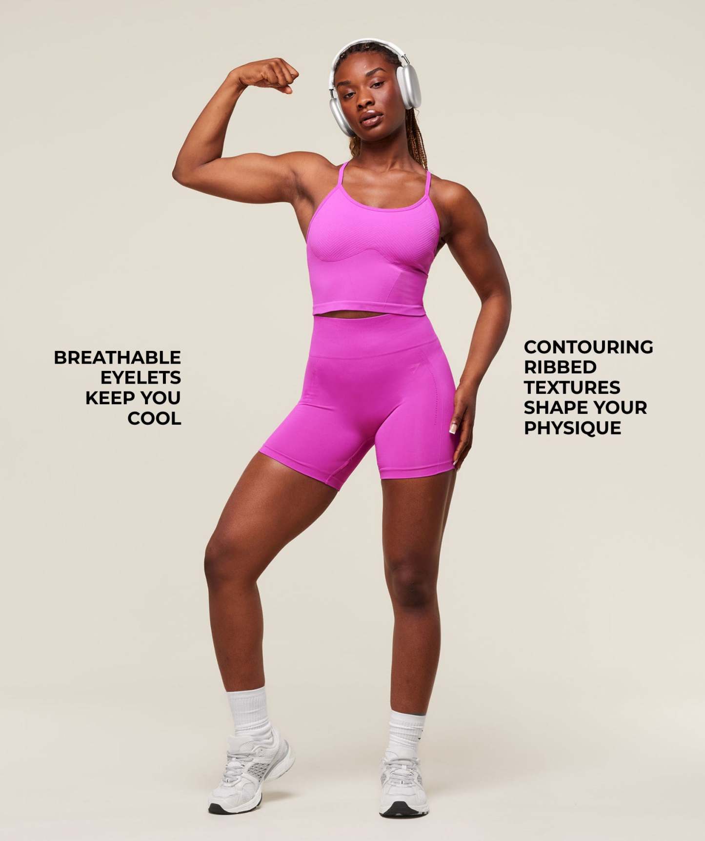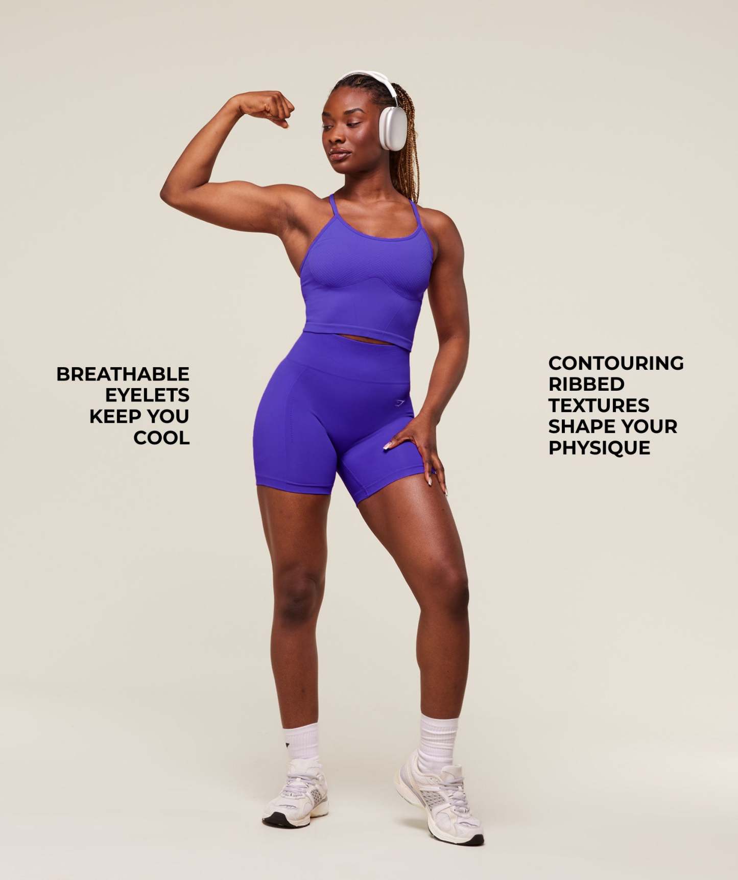 • Contouring ribbed textures shape your physique